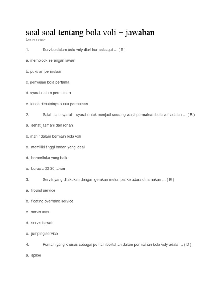 Soal Bola Voli Beserta Jawabannya