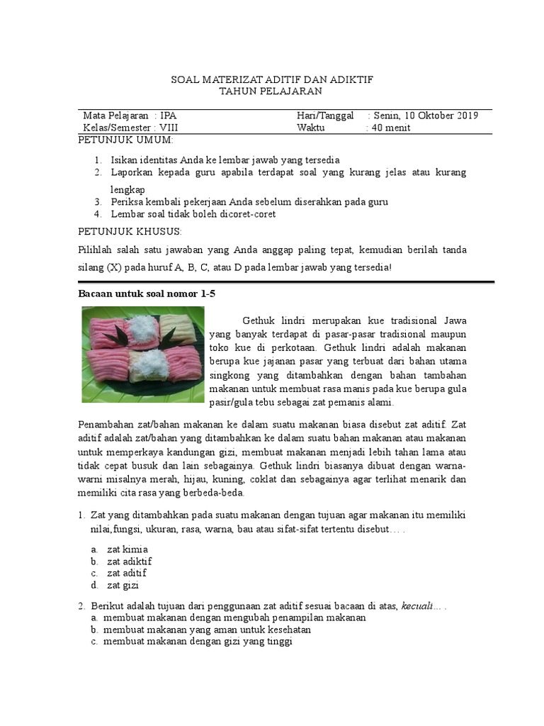 Soal Dan Jawaban Tentang Zat Akditif Smp Kelas 8