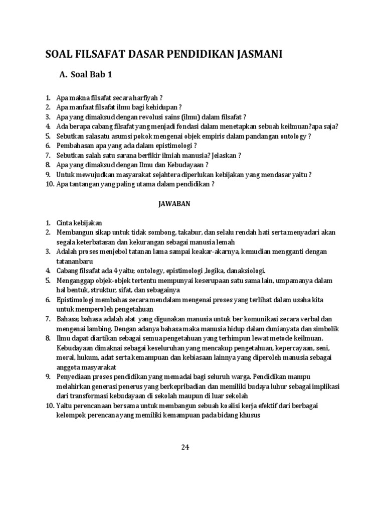 Soal Filsafat Dasar Pendidikan Jasmani