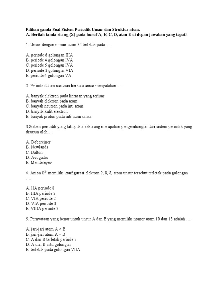 Soal Tentang Struktur Atom Dan Sistem Periodik Unsur Gabung